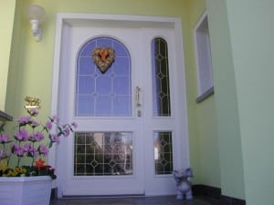 Kunststoff Haustüren mit Seitenteil rechts und links mit Wölb-scheiben