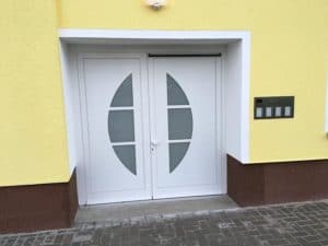 Aluminium Haustür 2 Flügelig mit Kämpfer Weiß & Stoßgriff