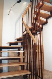 Massivholz Wangentreppe Ahorn/Buche 1/8 gewendelt stehender Krümlig & gebogene Treppenstufen