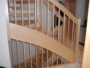 Massivholz Wangentreppe Buche 1/4 gewendelt Handlauf 40 X 80 mm & runde Geländerstäbe & Pfosten 80 x 80 mm